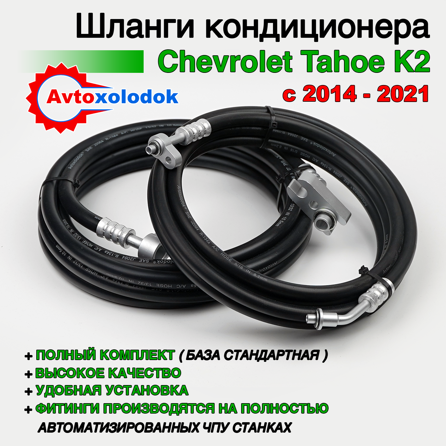 Магистрали изготовлены из специализированных кондиционерных шлангов Avtoxolodok предназначенных под хладагент R134a, стандарта SAE J2064, обладают высокой устойчивостью к химическим реагентам, которые активно разрушает штатные алюминиевые трубки заднего контура автокондиционера на автомобилях Chevrolet Tahoe K2