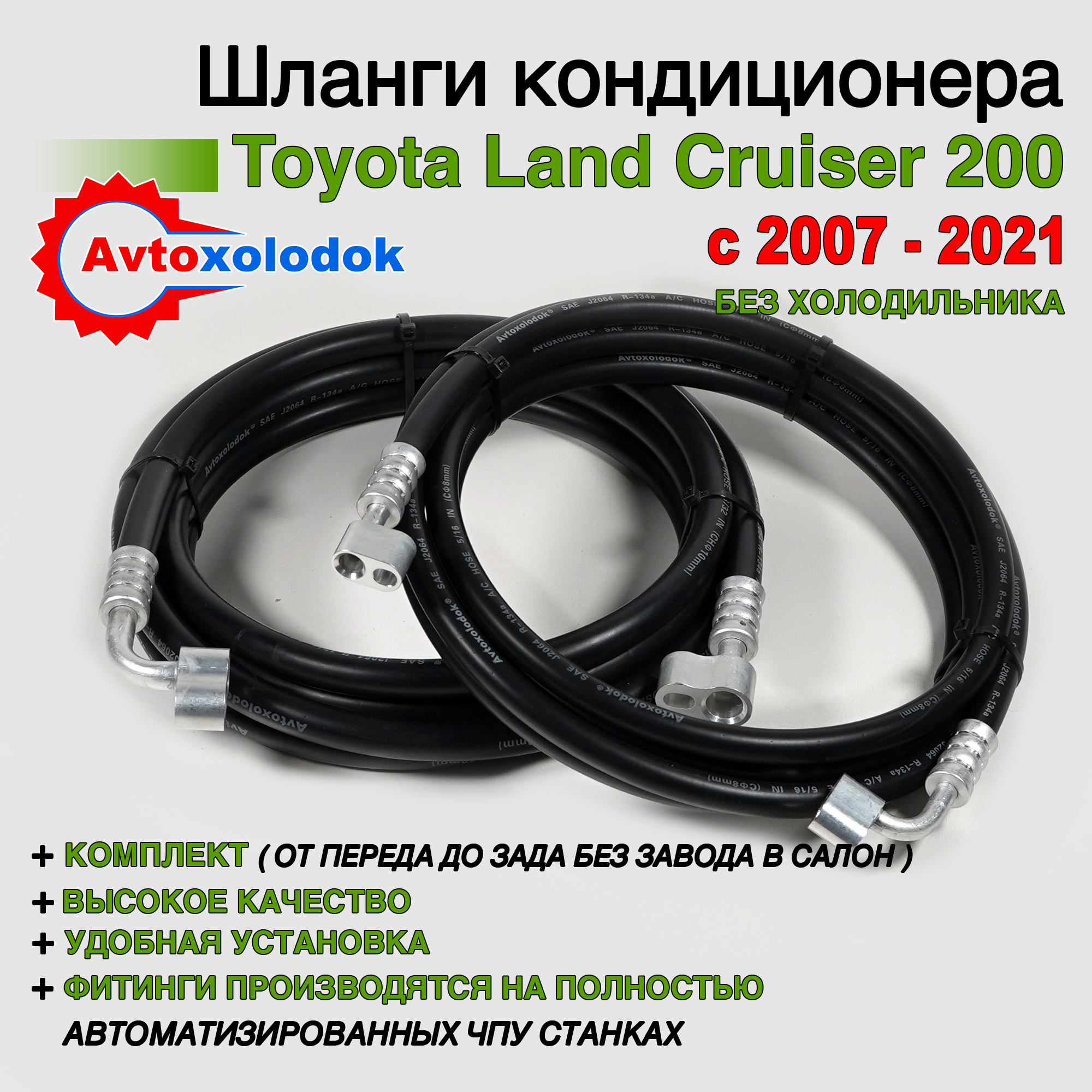 Магистрали изготовлены из специализированных кондиционерных шлангов Avtoxolodok предназначенных под хладагент R134a, стандарта SAE J2064, обладают высокой устойчивостью к химическим реагентам, которые активно разрушает штатные алюминиевые трубки заднего контура автокондиционера на автомобилях Toyota Land Cruiser 200