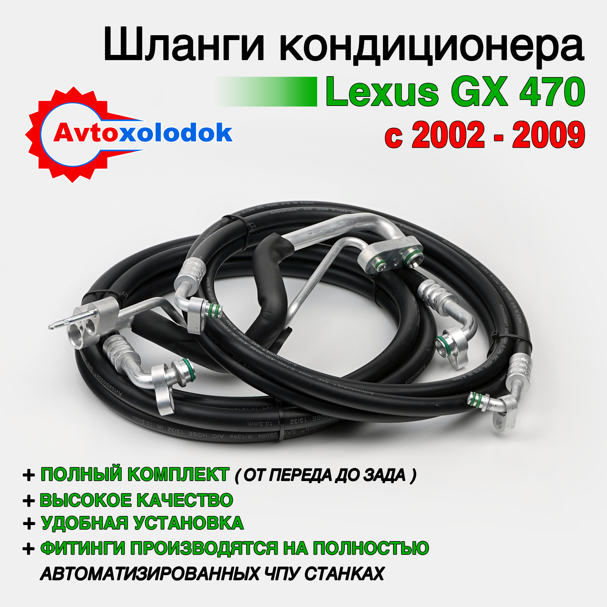 Магистрали изготовлены из специализированных кондиционерных шлангов Avtoxolodok предназначенных под хладагент R134a, стандарта SAE J2064, обладают высокой устойчивостью к химическим реагентам, которые активно разрушает штатные алюминиевые трубки заднего контура автокондиционера на автомобилях Lexus GX470