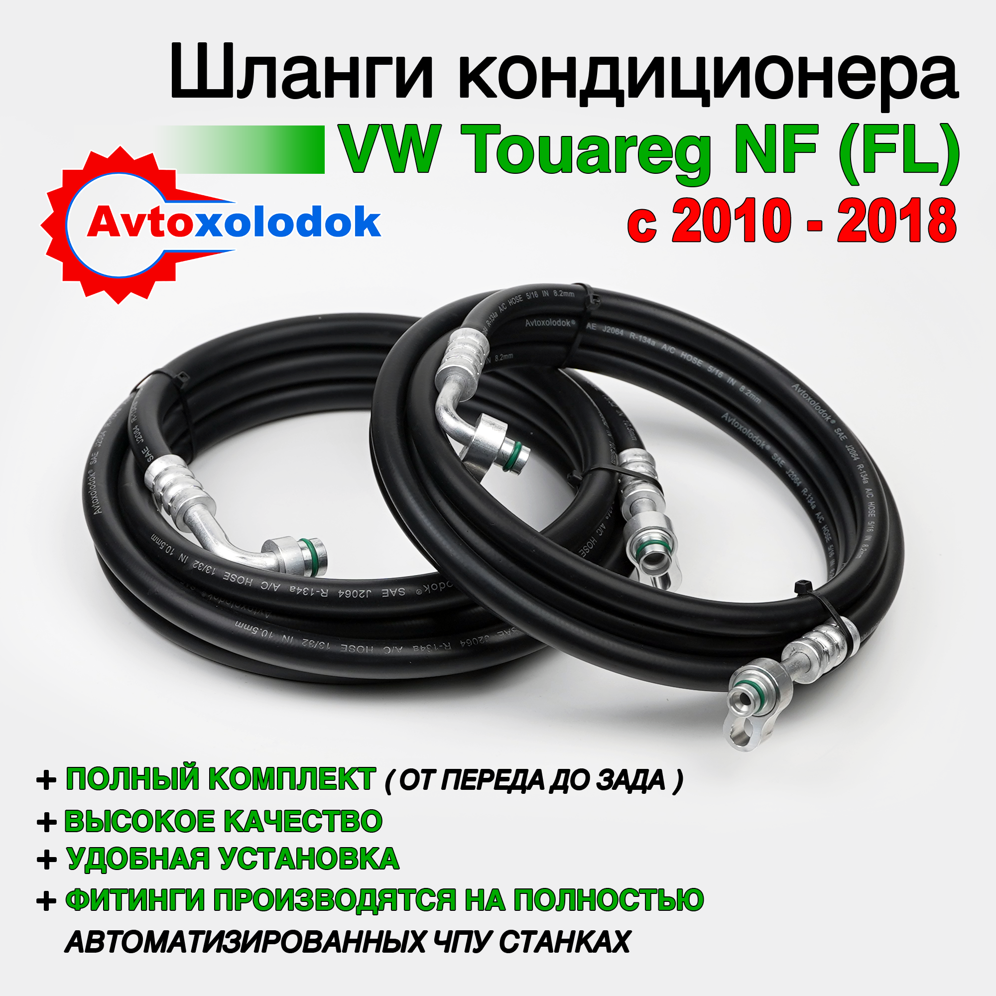Магистрали изготовлены из специализированных кондиционерных шлангов Avtoxolodok предназначенных под хладагент R134a, стандарта SAE J2064, обладают высокой устойчивостью к химическим реагентам, которые активно разрушает штатные алюминиевые трубки заднего контура автокондиционера на автомобилях Volkswagen Touareg NF