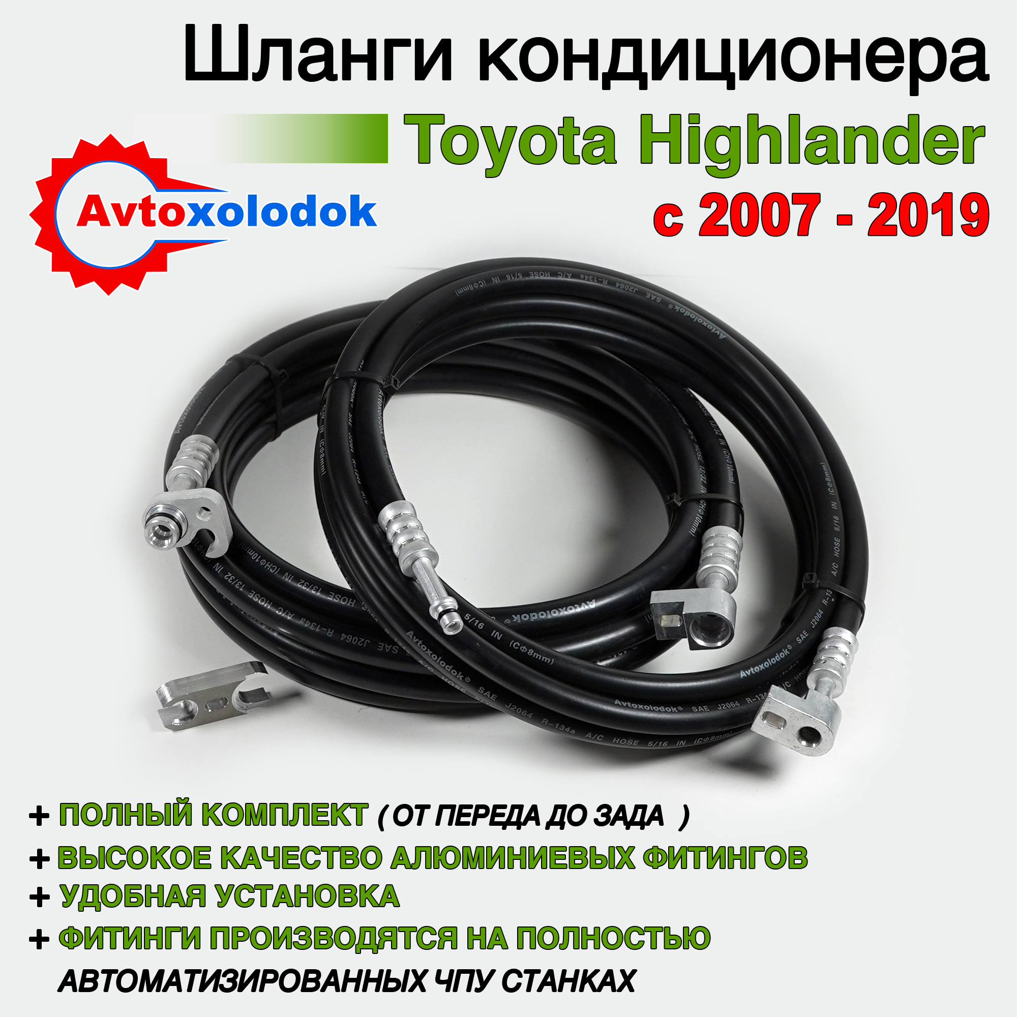Магистрали изготовлены из специализированных кондиционерных шлангов Avtoxolodok предназначенных под хладагент R134a, стандарта SAE J2064, обладают высокой устойчивостью к химическим реагентам, которые активно разрушает штатные алюминиевые трубки заднего контура автокондиционера на автомобилях Toyota Highlander