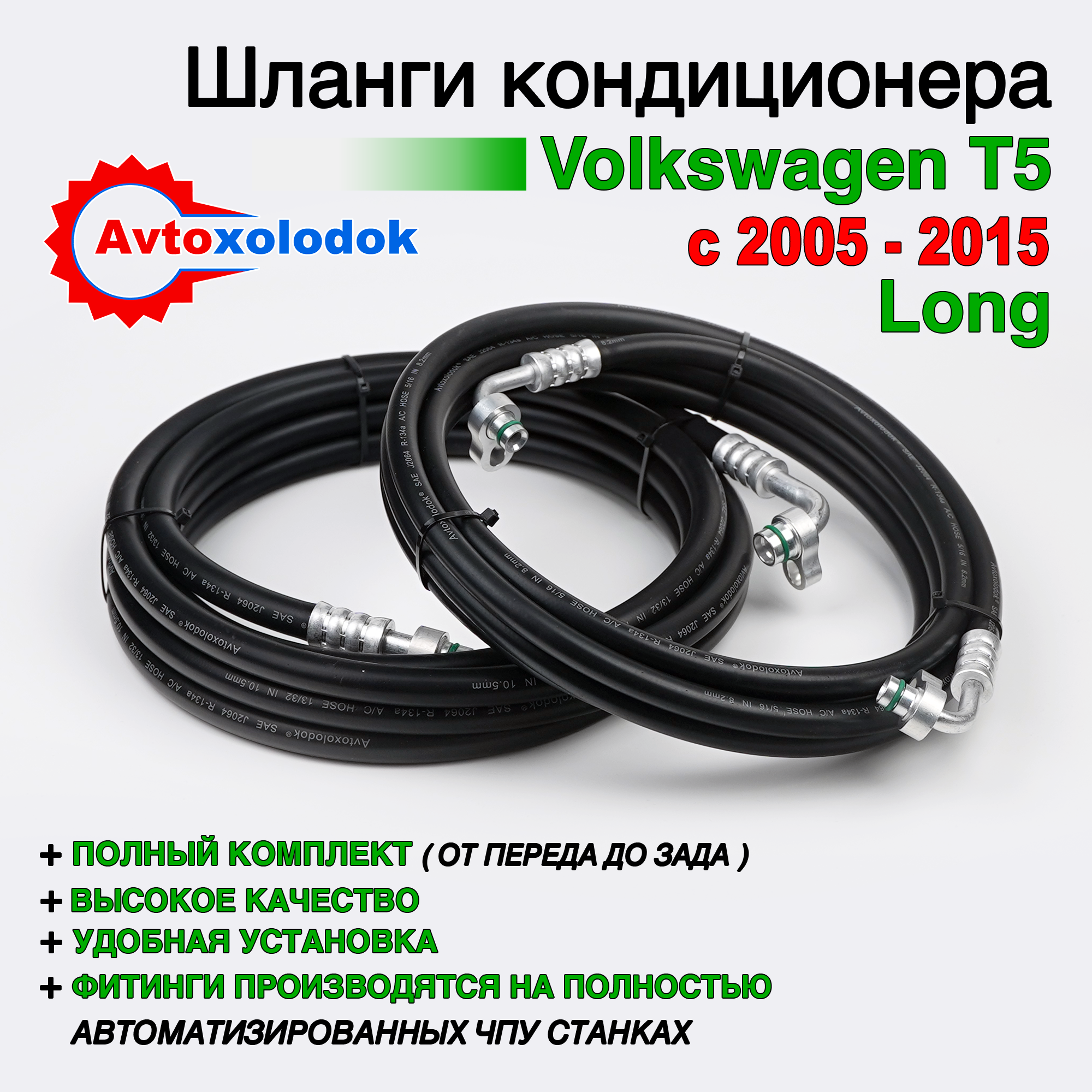 Магистрали изготовлены из специализированных кондиционерных шлангов Avtoxolodok предназначенных под хладагент R134a, стандарта SAE J2064, обладают высокой устойчивостью к химическим реагентам, которые активно разрушает штатные алюминиевые трубки заднего контура автокондиционера на автомобилях Volkswagen T5