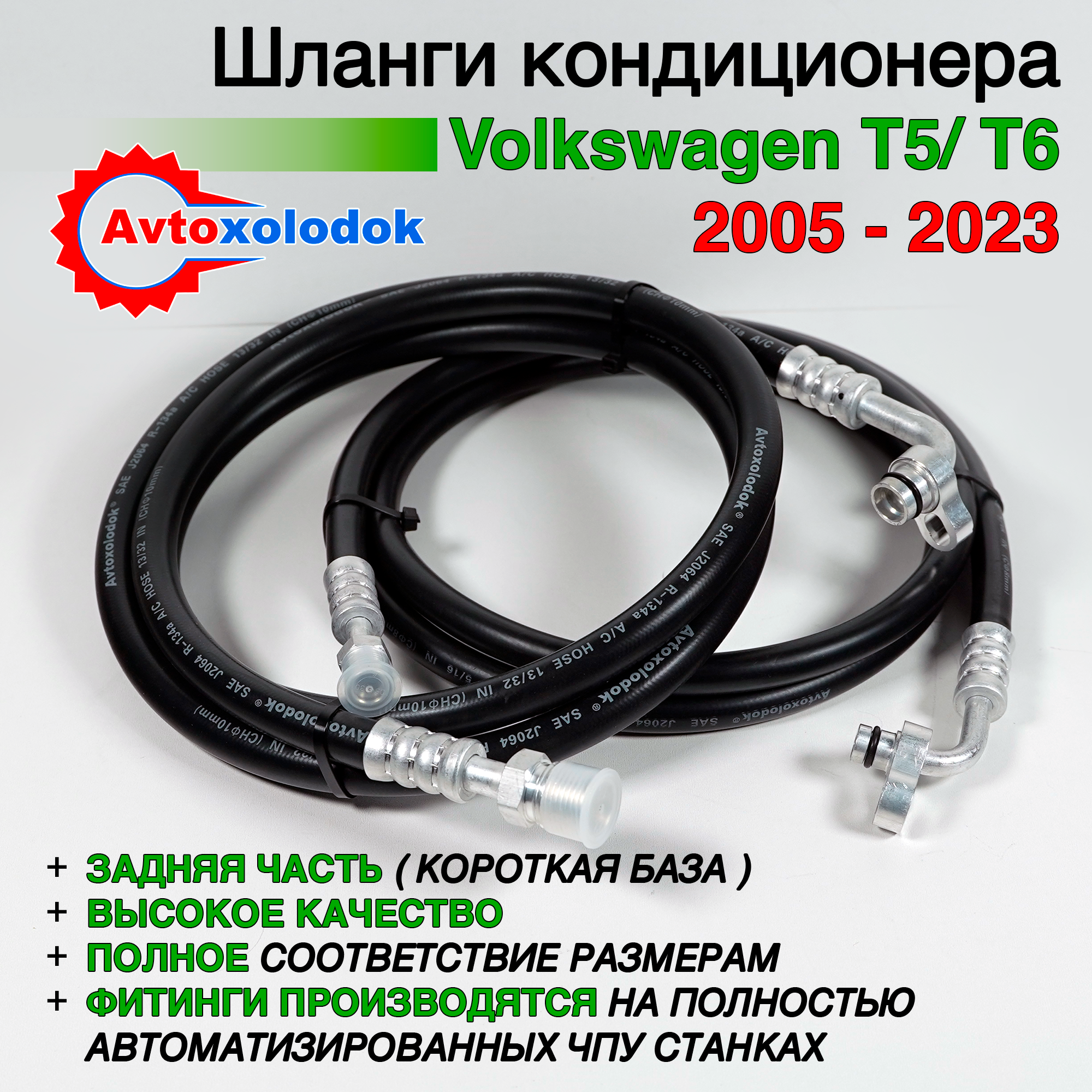 Магистрали изготовлены из специализированных кондиционерных шлангов Avtoxolodok предназначенных под хладагент R134a, стандарта SAE J2064, обладают высокой устойчивостью к химическим реагентам, которые активно разрушает штатные алюминиевые трубки заднего контура автокондиционера на автомобилях Volkswagen T5 / T6